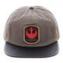 We can see Jyn Erso bargaining credits for this Star Wars Rogue One Distressed Rebel Slouch Snapback on Jakka, can't you? The practical tan wax-coated canvas hat is set off by orange striped stitching on the sides and a red, black, and gold Rebel Alliance logo applique on the front, and finished with a stitched black PU leather bill.